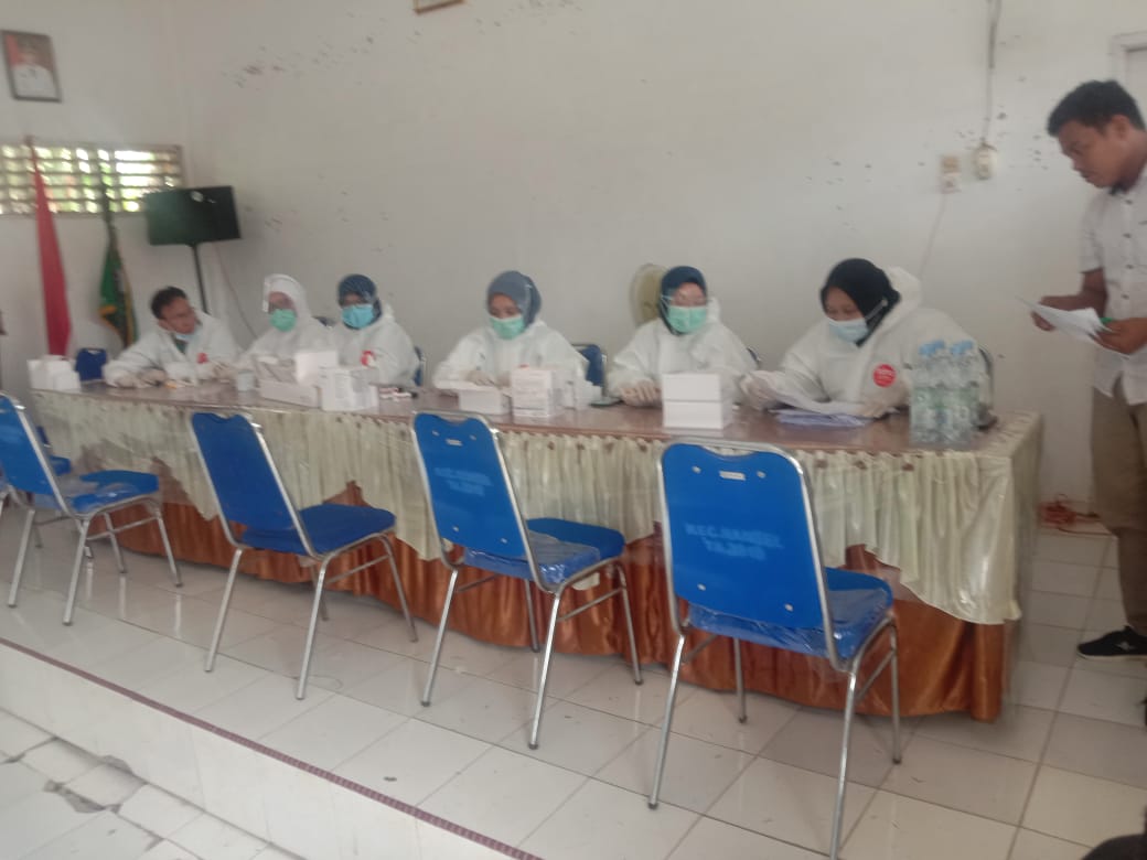Rapid tes dilaksanakan di Kecamatan Rantau Selatan melibatkan petugas penyelenggara dan petugas keamanan pada pesta demokrasi Pilkada Kabupaten Labuhanbatu.